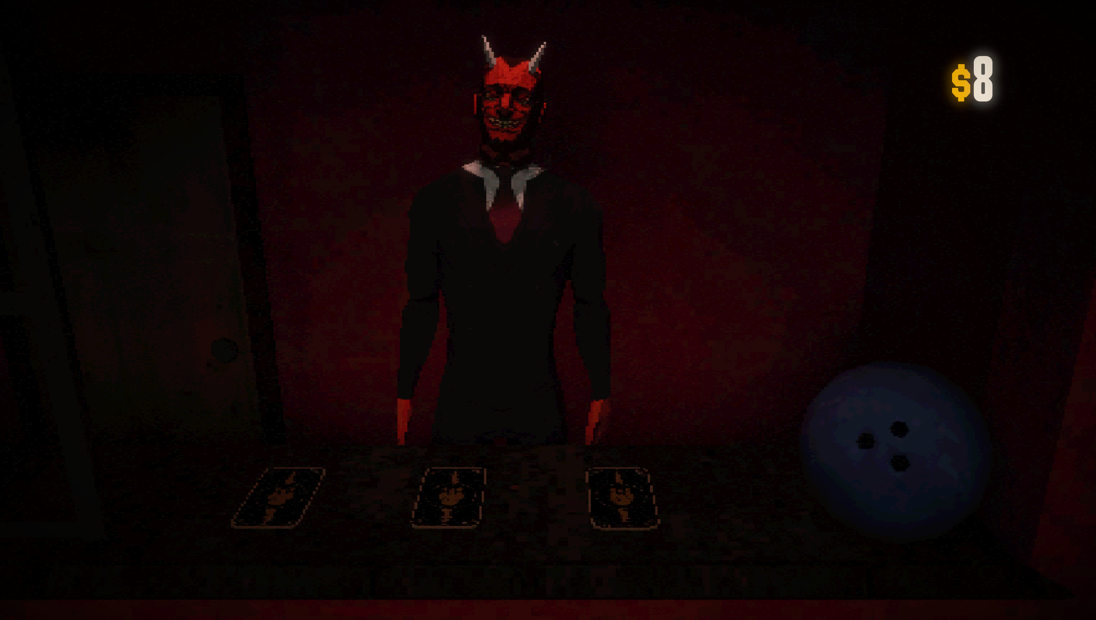 You are playing bowling with the devil over the course of multiple rounds! Every round you get atleast 3 Bowling Balls to knock over as many pins as you can! If you fail to knock over enough pins - your soul might be endangered!